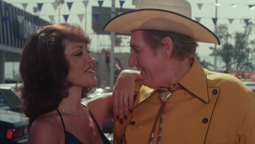 While our seven heroines are played by relative unknowns, the supporting cast is populated by just about everyone with a SAG card on the verge of expiry in 1979. Jim Backus, Alan Hale, Jr., Pat Buttram, Darby Hinton, Arthur Godfrey and Neville Brand poke their noses in for a paycheck, while Peter Lawford and Jack Palance take top billing as a drug lord and his deputy. These veterans are presented with a script that defies description in its irresistible lunacy. To their credit, most of them look only mildly as embarrassed as they probably should have been to round out their careers in a goofy, nil-budget jiggle-fest. Watching them nibble the scenery while simultaneously trying to hide behind it makes you wonder what sort of favors they owed to get mixed up in this.