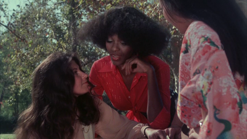 The female cast actually fares much better. While none of them will be causing Meryl Streep any sleepless nights, they play their roles with a tongue-in-cheek lightness that really makes them likable. They know what they signed up for: to utter silly lines while kicking ass, blowing up baddies and looking stunning. Boy, do they all deliver the goods. Sylvia Anderson (EBONY, IVORY AND JADE) as stuntwoman Terry is particularly good and Jacqulin Cole (SATAN’S CHEERLEADERS, wife of director Greydon Clark) is adorable as ringleader April.