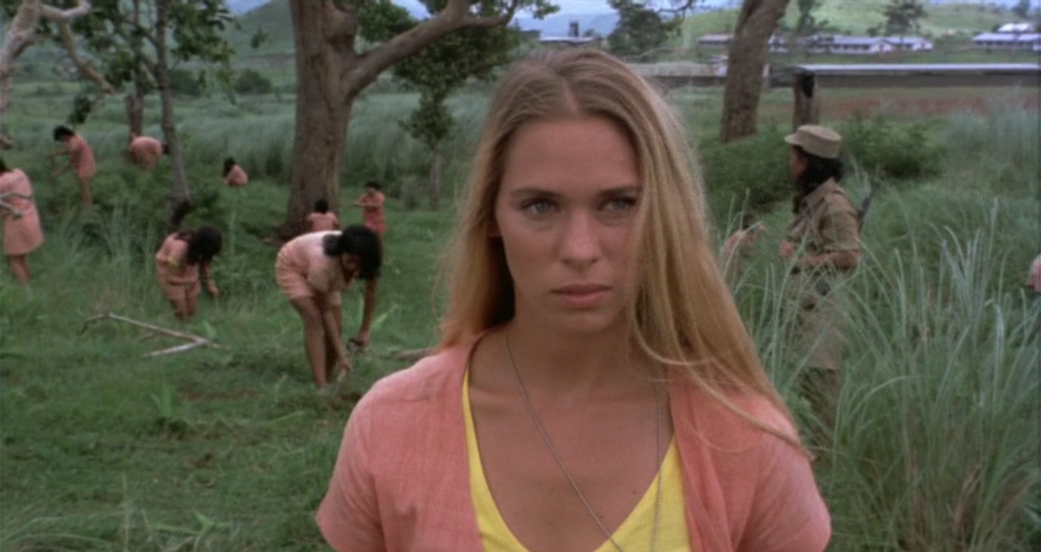 Outside of the prison, the island’s government is very interested in these two new inmates. Lee’s boyfriend/pimp is one of the biggest drug lords on the island and Karen’s revolutionary friends are making life very difficult for the despots running the government. To that end, the two women are shackled together and loaded onto a bus for transport to a maximum security prison. Karen’s revolutionaries make a bid to spring her from captivity which goes terribly wrong, leaving the still-chained Karen and Lee alone and on the run with no choice but to work together towards freedom.
