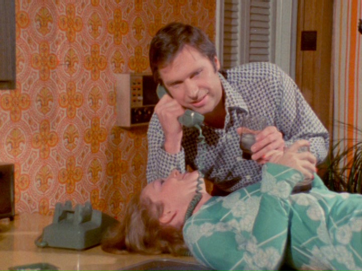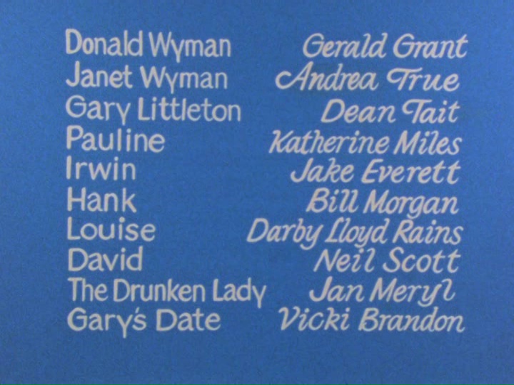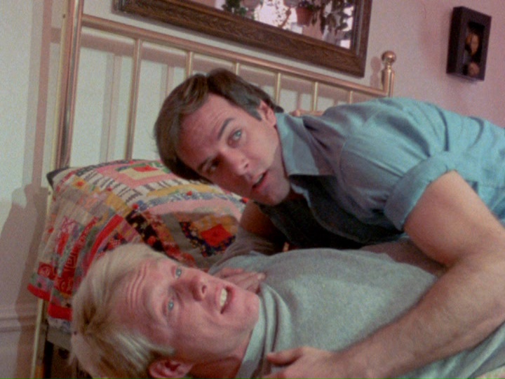 This becomes obvious during a wife-swapping party thrown by Donald and Janet’s neighbors (Darby Lloyd Rains of NAKED CAME THE STRANGER and Bill Morgan.) With a few drinks in her and fed up with marital celibacy, Janet declares: “Somebody’s going to fuck me tonight and I don’t care if it’s you or not.” Even this challenge to his sexual prowess/dominance and the prospect of having sex with another man’s wife under his very nose isn’t enough to excite Donald. He reaches out to surreptitiously grab the other husband’s penis in the midst of the foursome – only to be promptly rebuffed.
