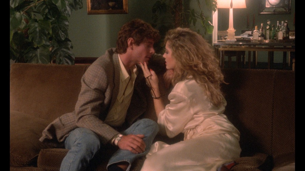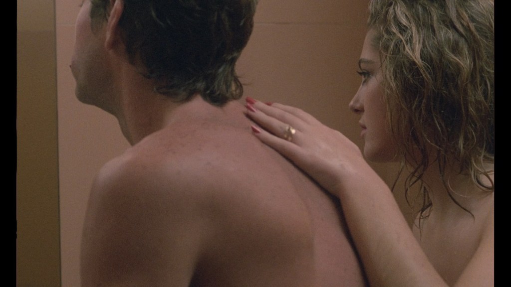 The story plays out like a gender-reversed 91/2 WEEKS. After Michael and Sarah’s first tryst, we discover that Sarah is an author working on a tawdry memoir about her first 100 conquests. She chooses Michael for no other reason than he’s there, and because she’s only got 99 lovers in her back pocket and needs to complete the set to complete her book. Where Black Emanuelle was a libertine, Sarah is an opportunist. The cynical way she seduces Michael, and the increasingly-sordid sex games she leads him into, fit right into the Yuppie “me first” outlook of the era. Is Sarah as cold as we are meant to believe? The nuanced performance of our lead actress says otherwise, but we’ll swing back around to the excellent cast in a moment.