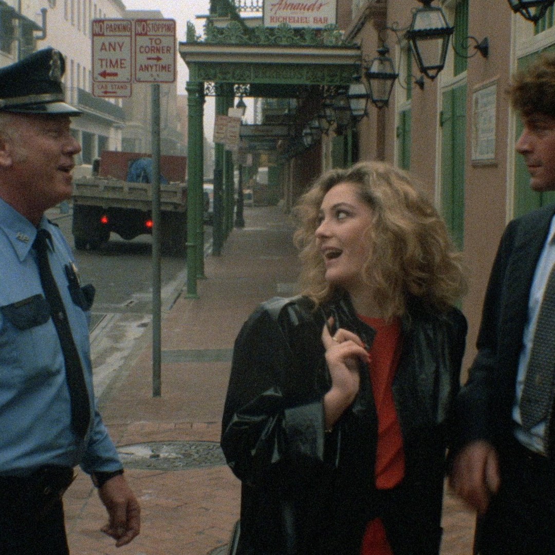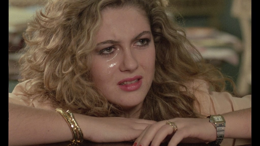 ELEVEN DAYS, ELEVEN NIGHTS is glorious to look at. D’Amato makes excellent use of his New Orleans locations, with the city practically becoming its own character. The interiors also don’t appear to be film sets but real apartments and offices, and they pop with gaudy 1980s glory. While the film can sometimes appear a bit like the cast of Dynasty has wandered into a glossy Massengill commercial, there is no denying the 80s glamour of it all.
