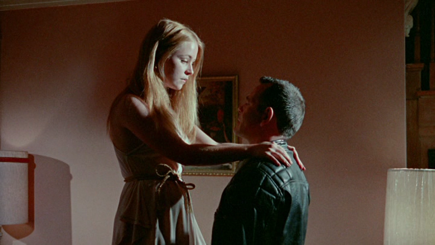 The next day, after coldly greeting his landlady as if nothing has happened, he hops on his motorbike to bust another brothel. After roaming the mansion’s catacombs, encountering many a sexual tableaux along the way, he meets a young prostitute called Angel (Sharon Matt, BABY VICKIE). Something about the innocent-eyed Angel softens his heart and Walsh helps her to escape the police. Brought back to his apartment, Angel tells Walsh that her real name is Laurie and a May-to-December romance begins to blossom. Now that he sees a Laurie, a prostitute, as a person it begins to effect his work. When his partner roughs up a stripper in yet another bust, Walsh comes to to the frightened woman’s aid.