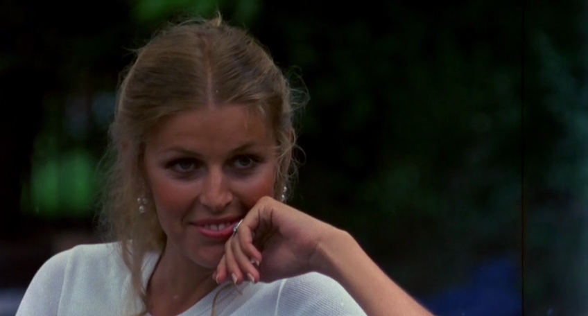 One such gag, and probably the most famous, features an earnest woman with a classic seventies women’s lib hairdo approaching Pamela before, after and sometimes during her erotic encounters to ask our heroine a series of increasingly convoluted questions about social issues of the day. When her motivation is finally questioned at the end of the film, she simply replies: “I’m just here to give the film socially-redeeming value” Classic stuff.