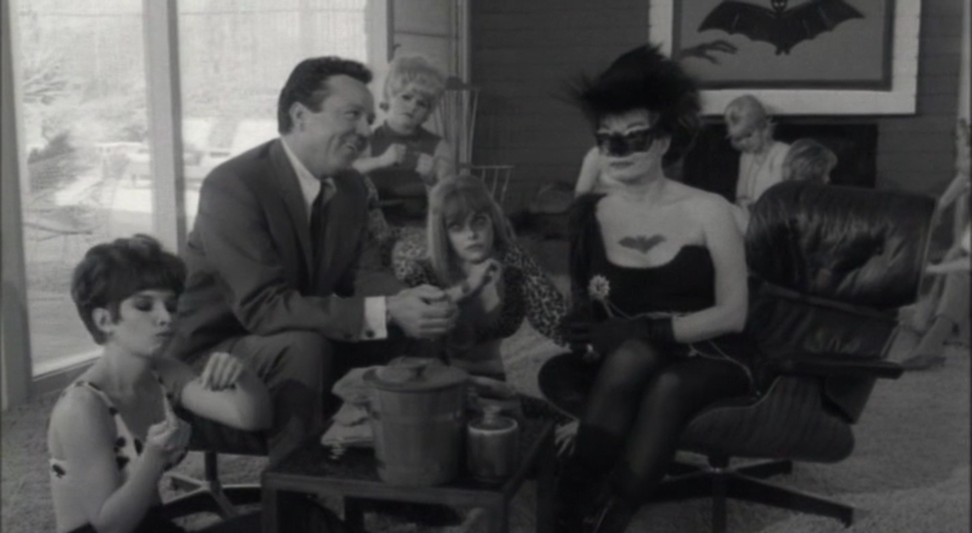 The ineptness of the production doesn’t help matters. While the film does have a certain dopey charm, the static camera work and inane dialog can be a chore to get through. Some scenes are just plain embarrassing to watch. In a rare moment of attempting to move the plot forward, Batwoman engages in a séance to try to discover the location of the stolen “Atomic Hearing Aid.” Her occult explorations are stymied by an over-eager Chinese spirit who keeps interrupting. Rather than speaking Chinese, the voice simply repeats “ching-chang-choy” over and over, crossing the border from ineptitude into racism in a trek that makes Mickey Rooney’s “yellowface” performance in BREAKFAST AT TIFFANY’S seem positively sympathetic. Scene after scene of vapidity unravel before the viewer with no end in sight. Indeed, THE WILD WORLD OF BATWOMAN may well be the longest 70 minutes of your life if you go into it looking for anything other than a mindless romp.