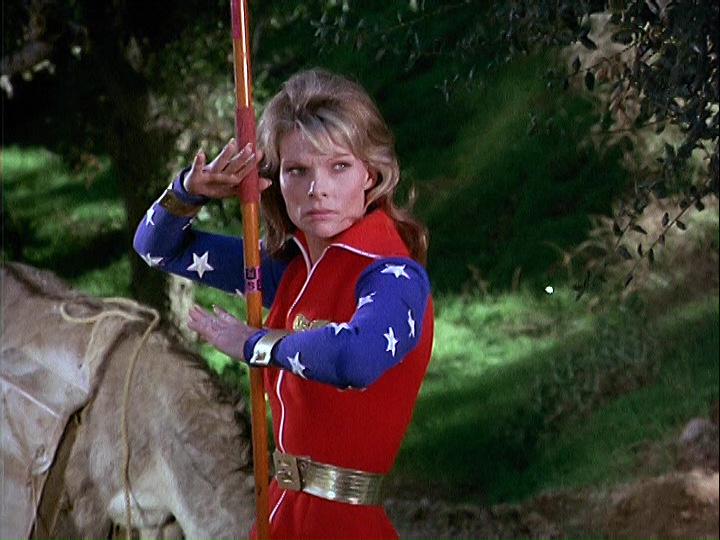 The two Amazons engage in a javelin battle that is the highlight of the film. Cathy Lee Crosby is given a chance to show her athletic prowess and in almost every shot it is quite apparent that Wonder Woman’s fighting is being performed by Crosby herself and not a stuntwoman. At one point Ford’s javelin comes so close to Crosby’s head that it actually catches in her hair.